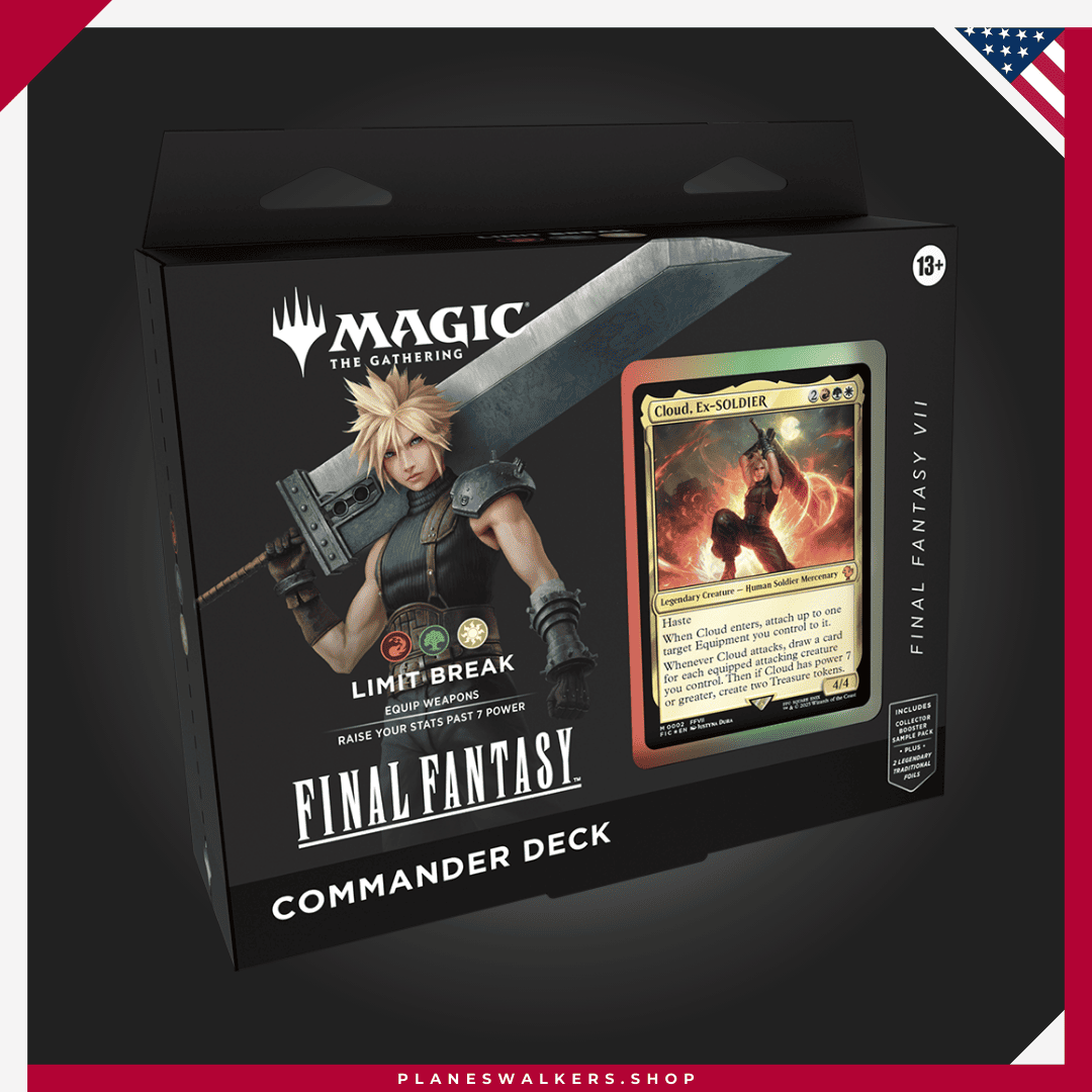 The entire FINAL FANTASY saga is here! Your players will step into the worlds of the beloved FINAL FANTASY RPG series’ sixteen mainline games with a Commander deck mainly featuring cards from FINAL FANTASY VI, FINAL FANTASY VII, FINAL FANTASY X, and FINAL FANTASY XIV. They’ll cast powerful spells, call upon classic summons, and even visit their favorite locations on the back of a Chocobo. Countless elements from the games are here for players to weave together their own stories.