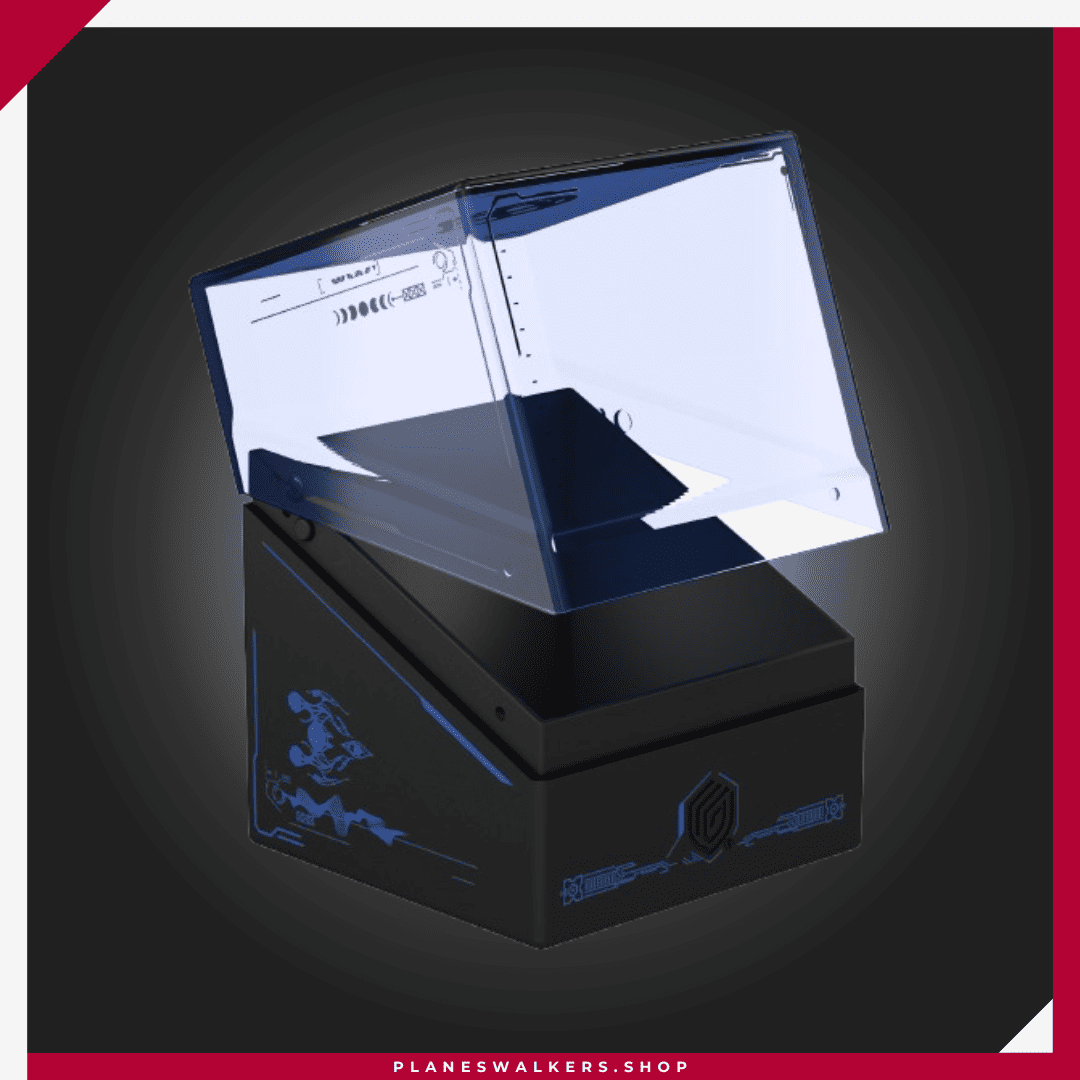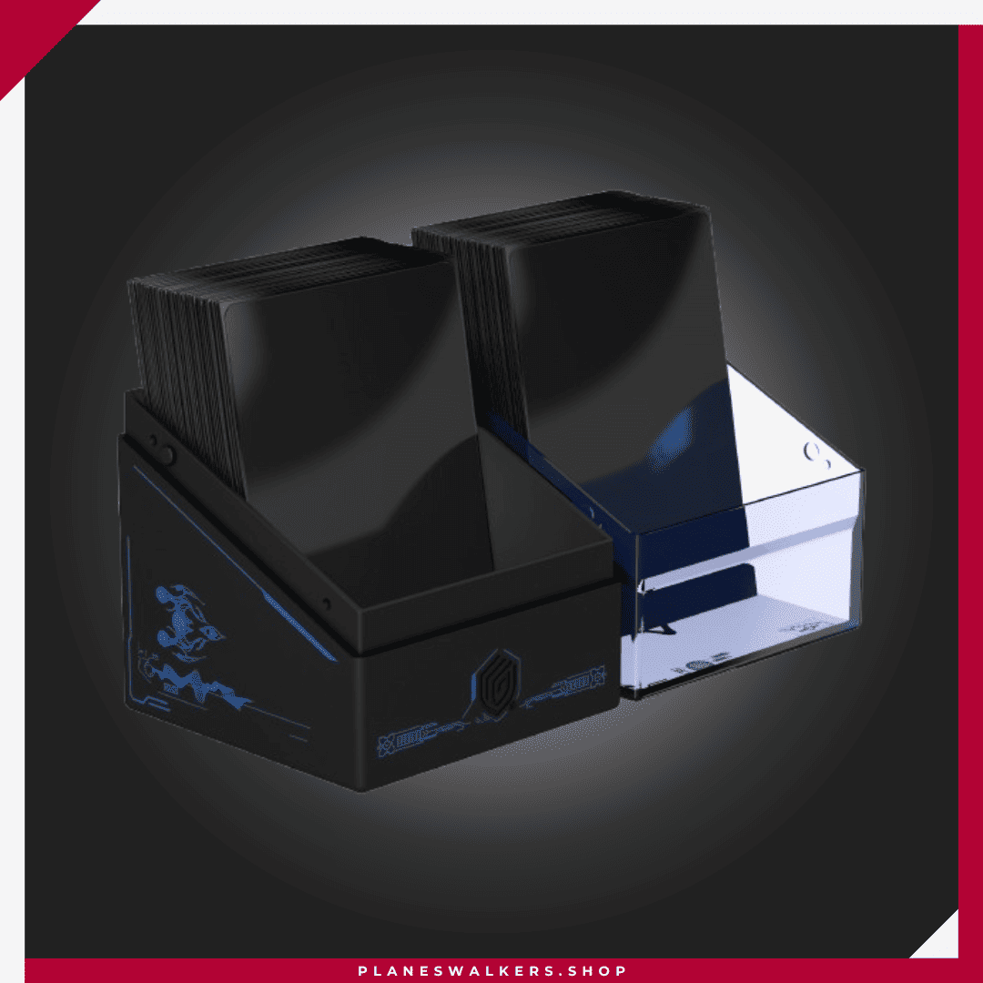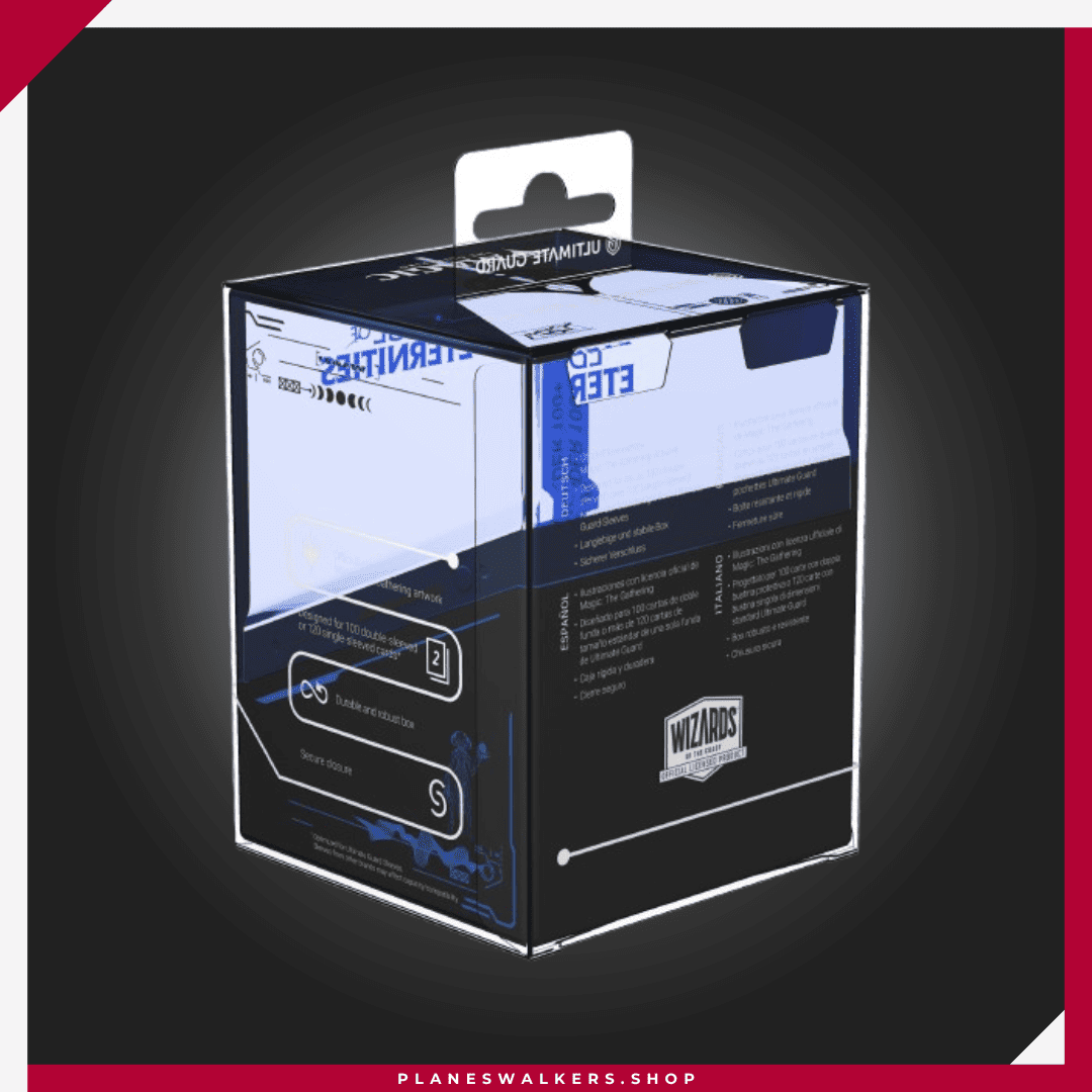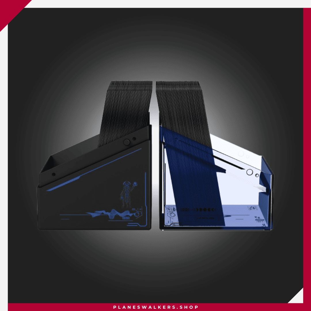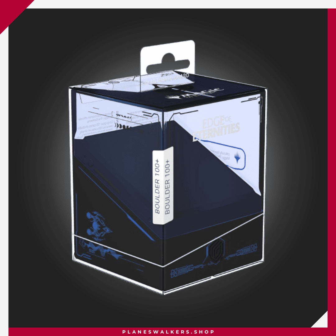 El Boulder 100+ es una caja para mazos duradera y fiable, con arte con licencia oficial de la colección «Edge of Eternities» de Magic: The Gathering. A pesar de su cierre seguro, el Boulder 100+ es fácil y cómodo de abrir, y tiene capacidad para 100 cartas de doble funda con fundas de Ultimate Guard. Diseñada para combinarse con todas las cajas de almacenamiento masivo de Ultimate Guard, las Boulder encajan especialmente bien en las cajas Arkhive, Superhive y Flip’n’Tray.