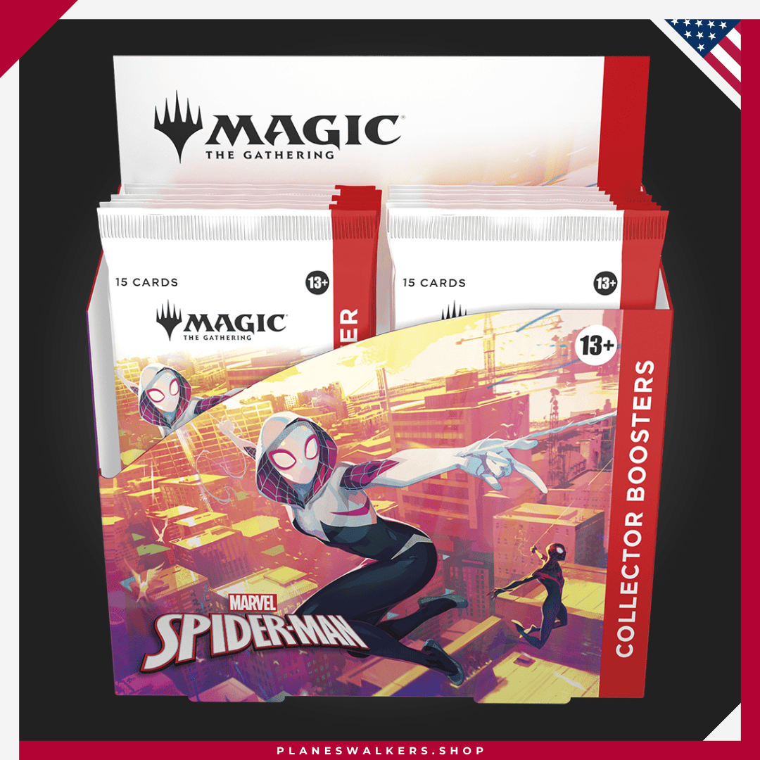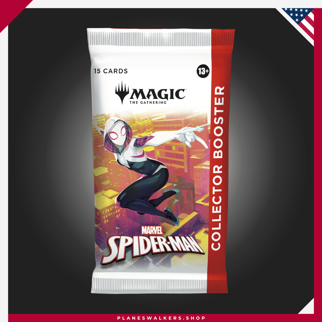 Collector Boosters gather all the coolest cards and foil treatments in one place! Each booster contains Rares and/or Mythics, Traditional Foils, a Borderless basic land, and more. Web-slinging heroes may encounter even more beautiful foils and picture-perfect lands. You could also find the headliner card—the most collectible pull of all!