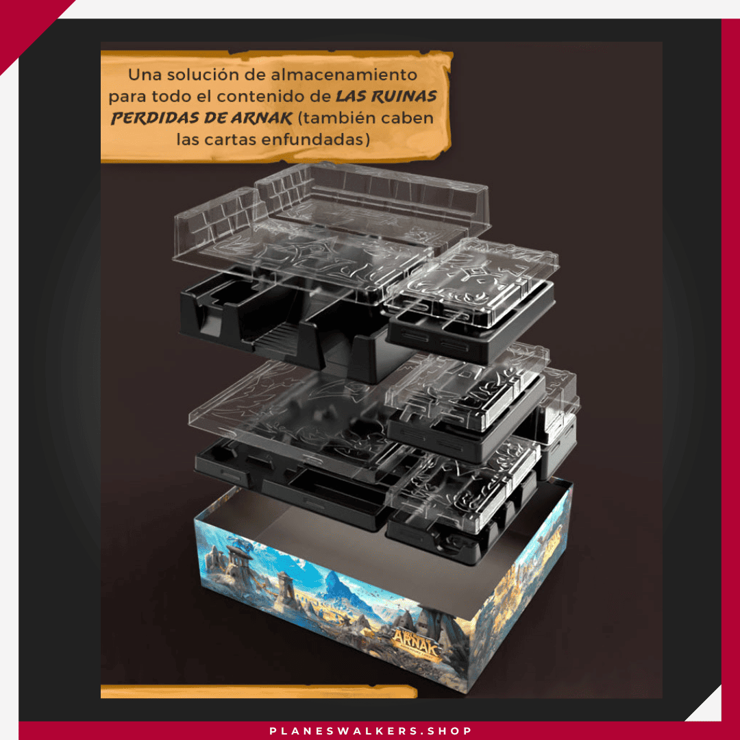 ✔️ Solución de almacenamiento para todo el contenido de Las Ruinas Perdidas de Arnak, incluida la opción de almacenar cartas enfundadas