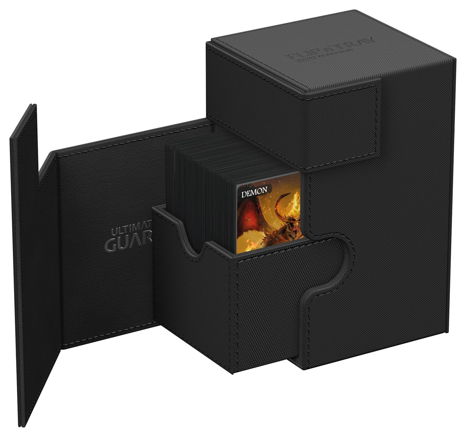 La caja de mazos Ultimate Guard por excelencia: un diseño monocolor atemporal con un fuerte cierre magnético, bandejas para cartas y dados para un almacenamiento seguro de tu mazo. Con superficie de Xenoskin resistente pero suave. Con espacio para 100 cartas de doble funda o 120 de una sola funda tamaño estándar, el Flip’n’Tray 100+ lo tiene todo.