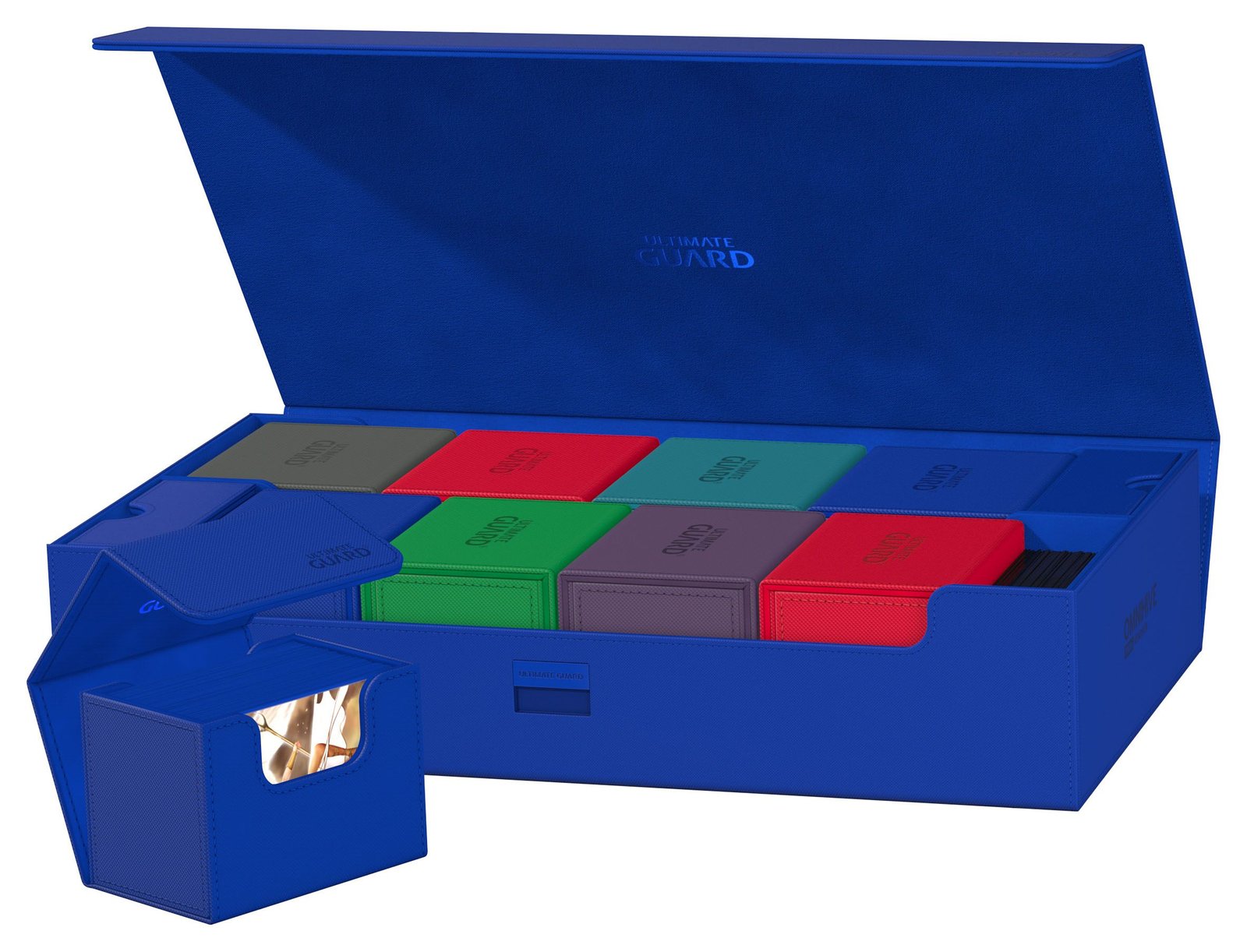 Diseñado para más de 1000 cartas de tamaño estándar de doble funda o 1250+ de una sola funda de Ultimate Guard *