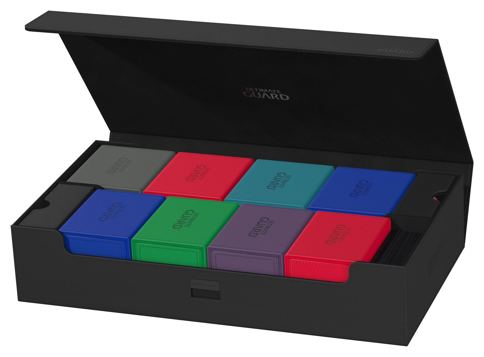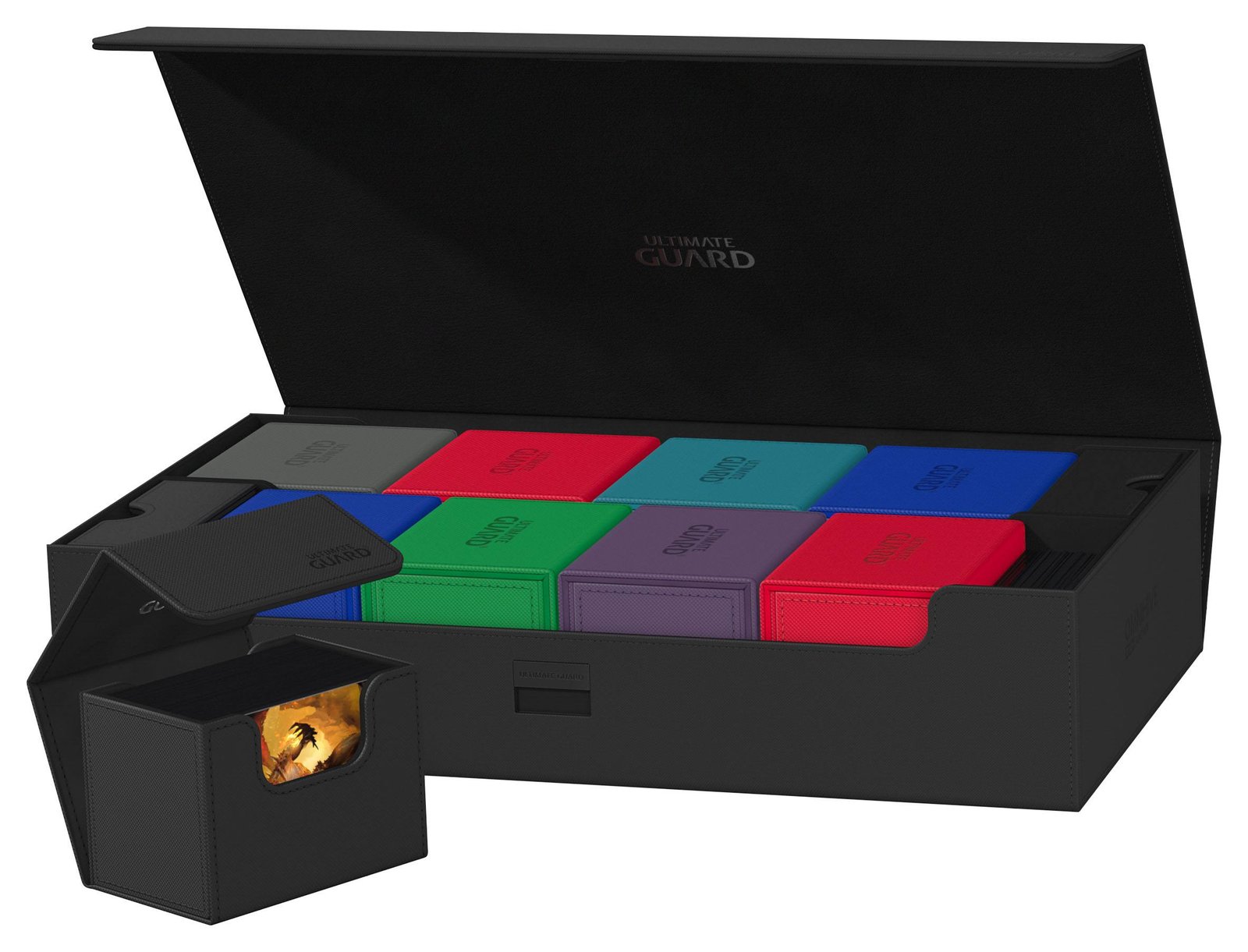 Diseñado para más de 1000 cartas de tamaño estándar de doble funda o 1250+ de una sola funda de Ultimate Guard *