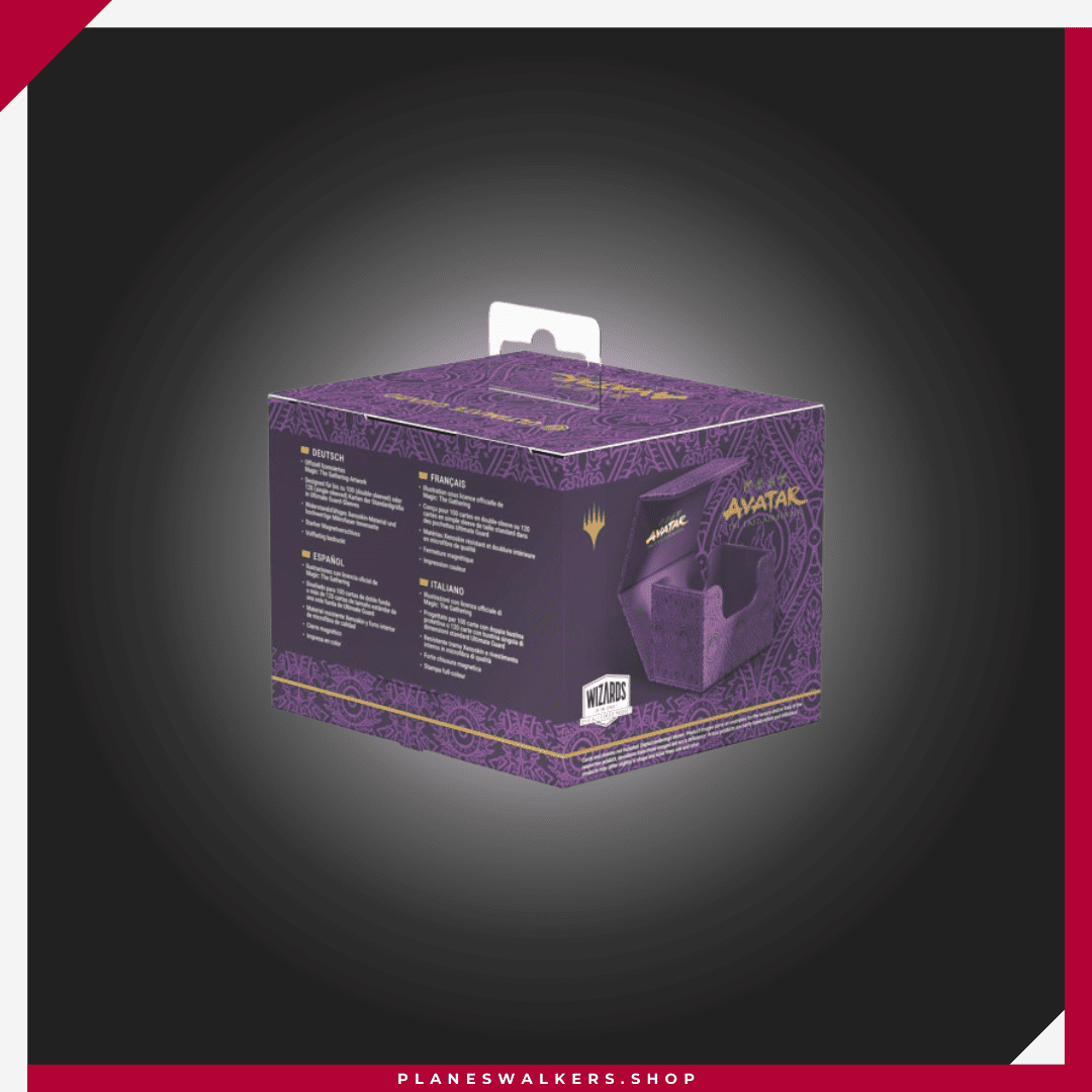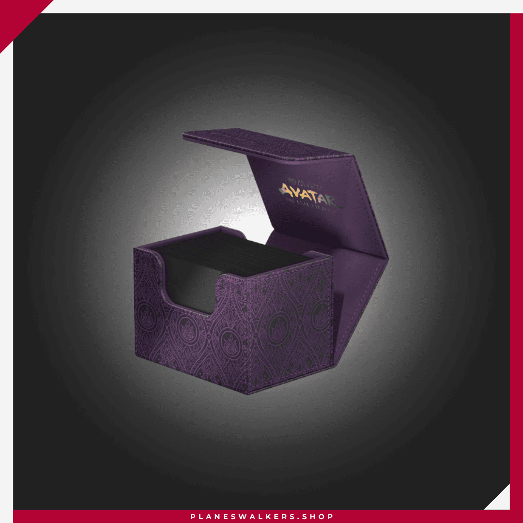 El Sidewinder 100+ hecho de material Xenoskin duradero tiene capacidad para hasta 100 cartas de doble funda, que se mantienen seguras en la caja de mazo gracias a un fuerte cierre magnético y un interior suave de microfibra. La superficie Xenoskin resistente y de alta calidad del Sidewinder está impresa a todo color con ilustraciones con licencia oficial del set Magic: The Gathering | Avatar: The Last Airbender.