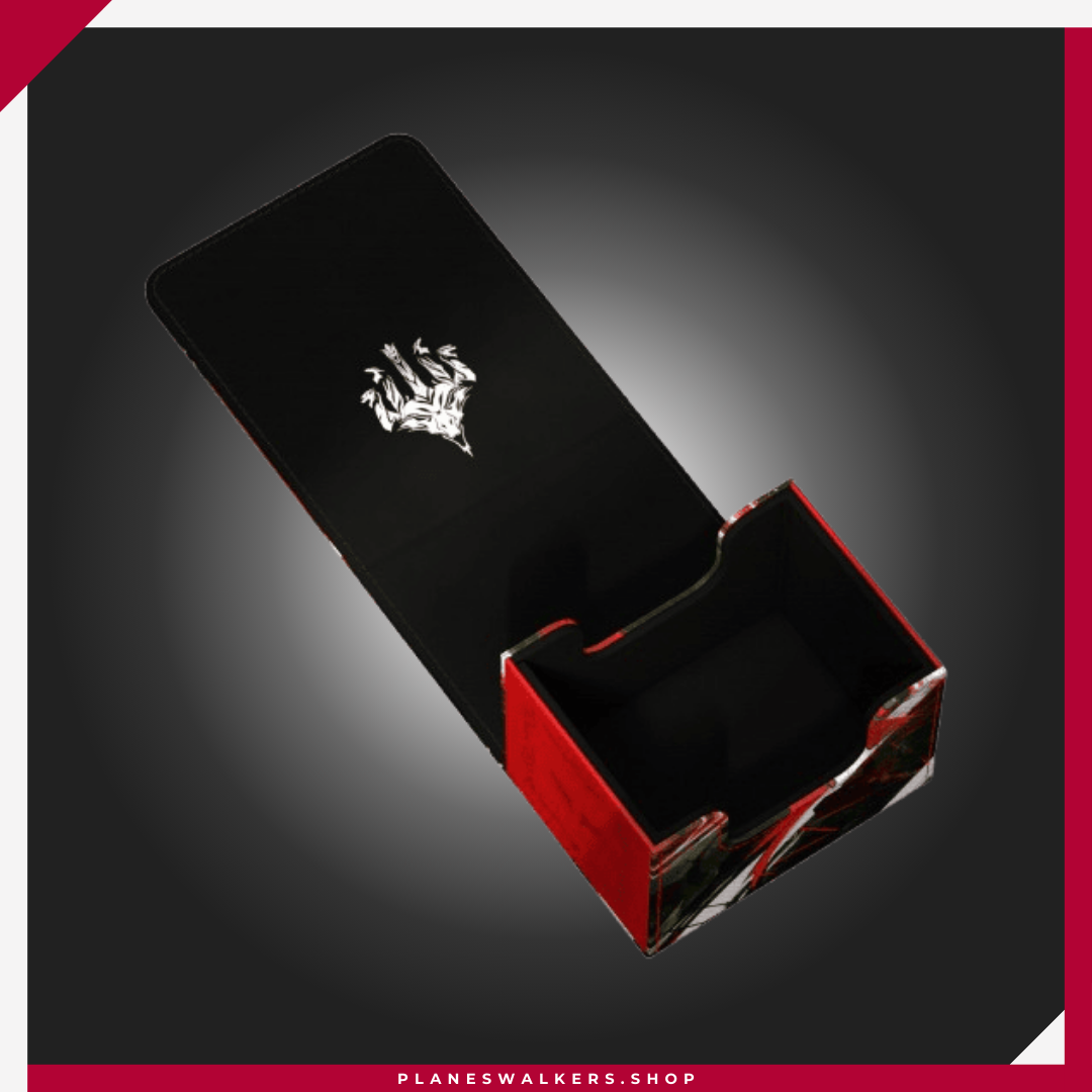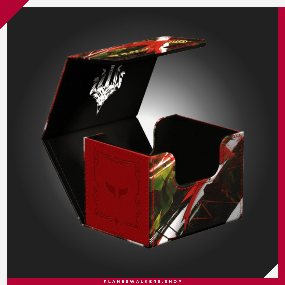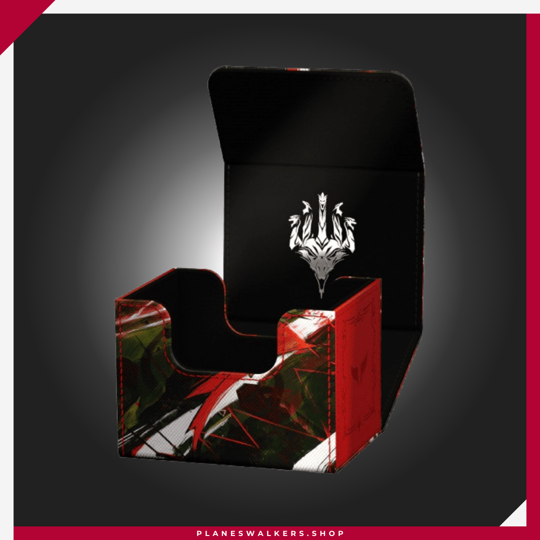 El Sidewinder 100+ hecho de material Xenoskin duradero tiene capacidad para hasta 100 cartas de doble funda o 120 de sola funda, que se mantienen seguras en la caja de mazo gracias a un fuerte cierre magnético y un interior suave de microfibra. La superficie Xenoskin resistente y de alta calidad del Sidewinder está impresa a todo color con ilustraciones con licencia oficial del set Tarkir: Tormenta Dracónica de Magic: The Gathering.