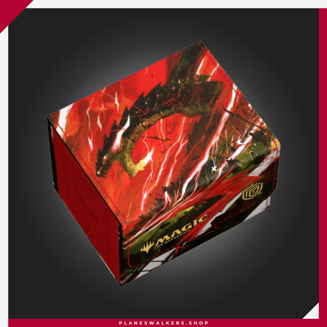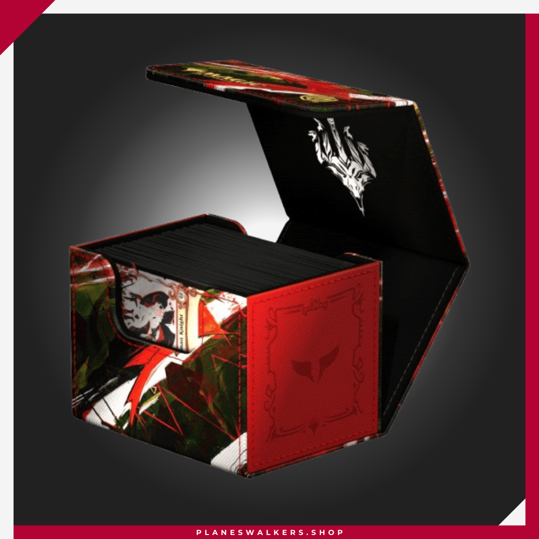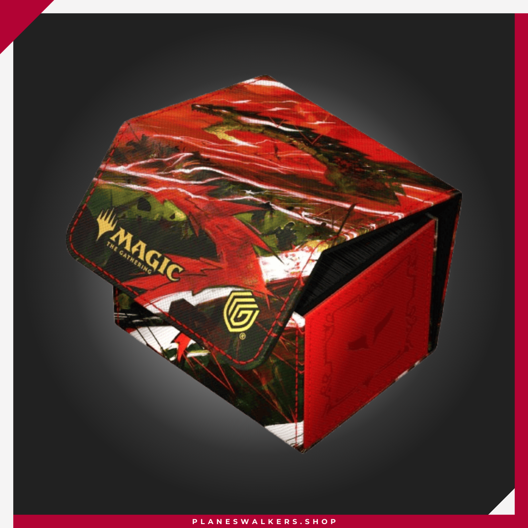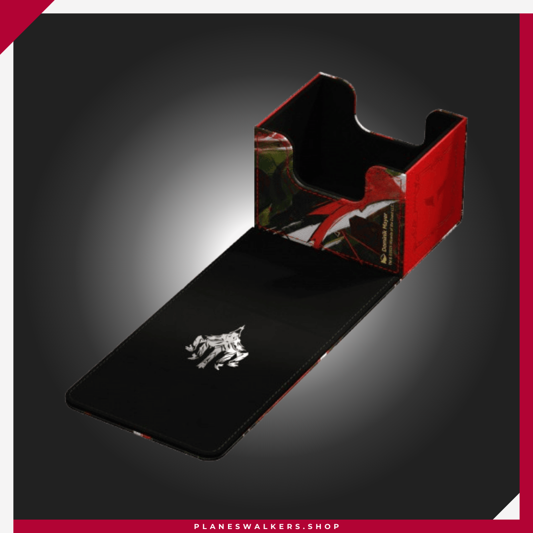 El Sidewinder 100+ hecho de material Xenoskin duradero tiene capacidad para hasta 100 cartas de doble funda o 120 de sola funda, que se mantienen seguras en la caja de mazo gracias a un fuerte cierre magnético y un interior suave de microfibra. La superficie Xenoskin resistente y de alta calidad del Sidewinder está impresa a todo color con ilustraciones con licencia oficial del set Tarkir: Tormenta Dracónica de Magic: The Gathering.