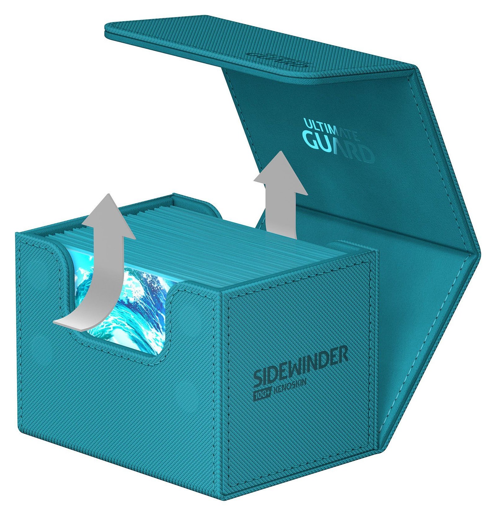 Nuestro práctico estuche para mazos Sidewinder 100+ proporciona un fácil acceso a su mazo de cartas desde ambos lados. La caja está optimizada para contener 100 cartas de tamaño estándar en doble funda o 120 en una sola funda de la marca Ultimate Guard.