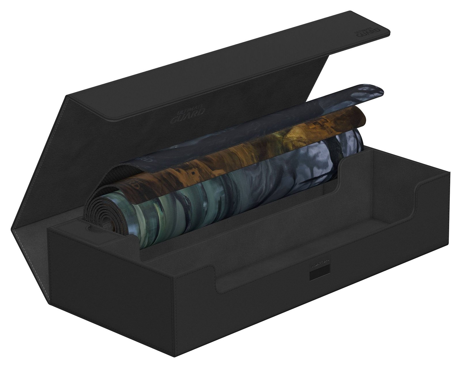 ¡La caja definitiva que cumple con todas tus necesidades de almacenamiento! Con espacio suficiente para todo lo que necesitas: compartimentos para varios portamazos y cajas, dos tapetes y accesorios como dados, tokens y contadores.