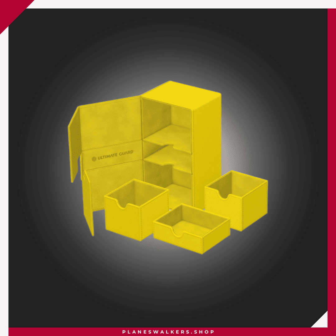 Disfruta de las últimas vibraciones veraniegas con el Twin Flip’n’Tray 200+ Xenoskin de Ultimate Guard de la edición limitada «Summer Edition 2025» en cuatro nuevos y radiantes colores: Dandelion, Peach, Lime et Lagoon La caja del mazo Twin Flip’n’Tray tiene dos compartimentos accesibles de forma independiente con un interior de microfibra de alta calidad para 100 (de doble funda) o 120 (de sola funda) cartas cada uno. ¡Además, la resistente caja Xenoskin tiene un compartimento extraíble para accesorios y un resistente cierre magnético para mantener a salvo en su interior las cartas de Magic: The Gathering, Pokémon, Lorcana, One Piece o Yu-Gi-Oh!